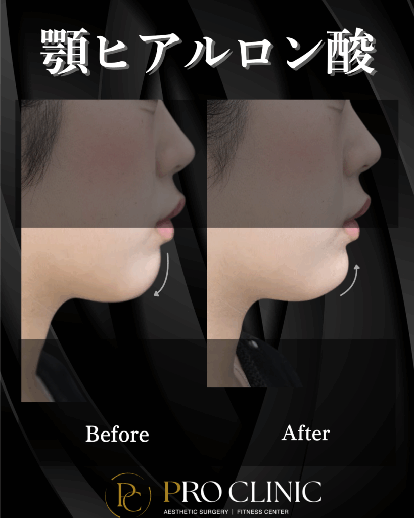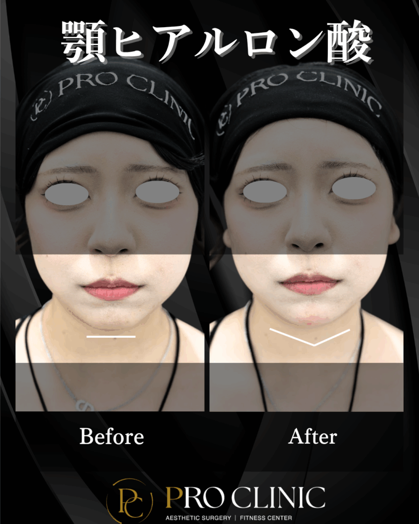 患者様のご希望: 「顎が少し長く見えるのがコンプレックス。ヒアルロン酸で前に出すと、バランスが良くなると聞いて来ました。」