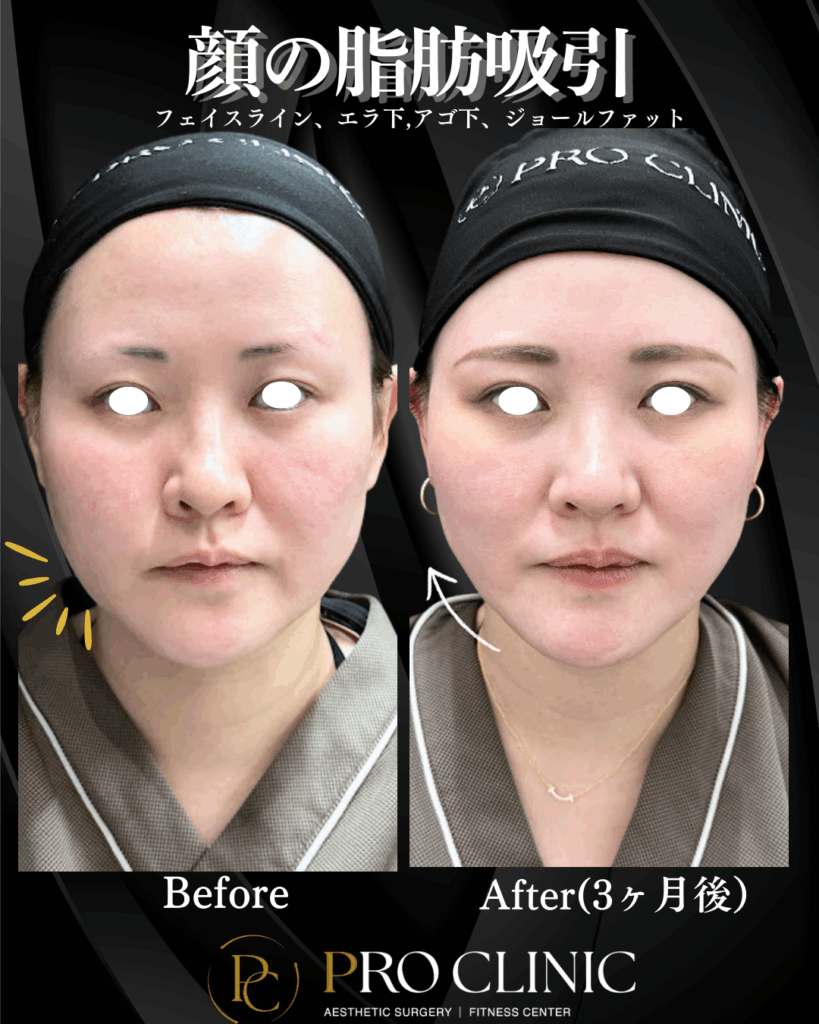 ✅ 施術ポイント①:徹底的な脂肪吸引で根本改善! 顔の丸みの原因となる、これらの脂肪を丁寧に取り除きます。